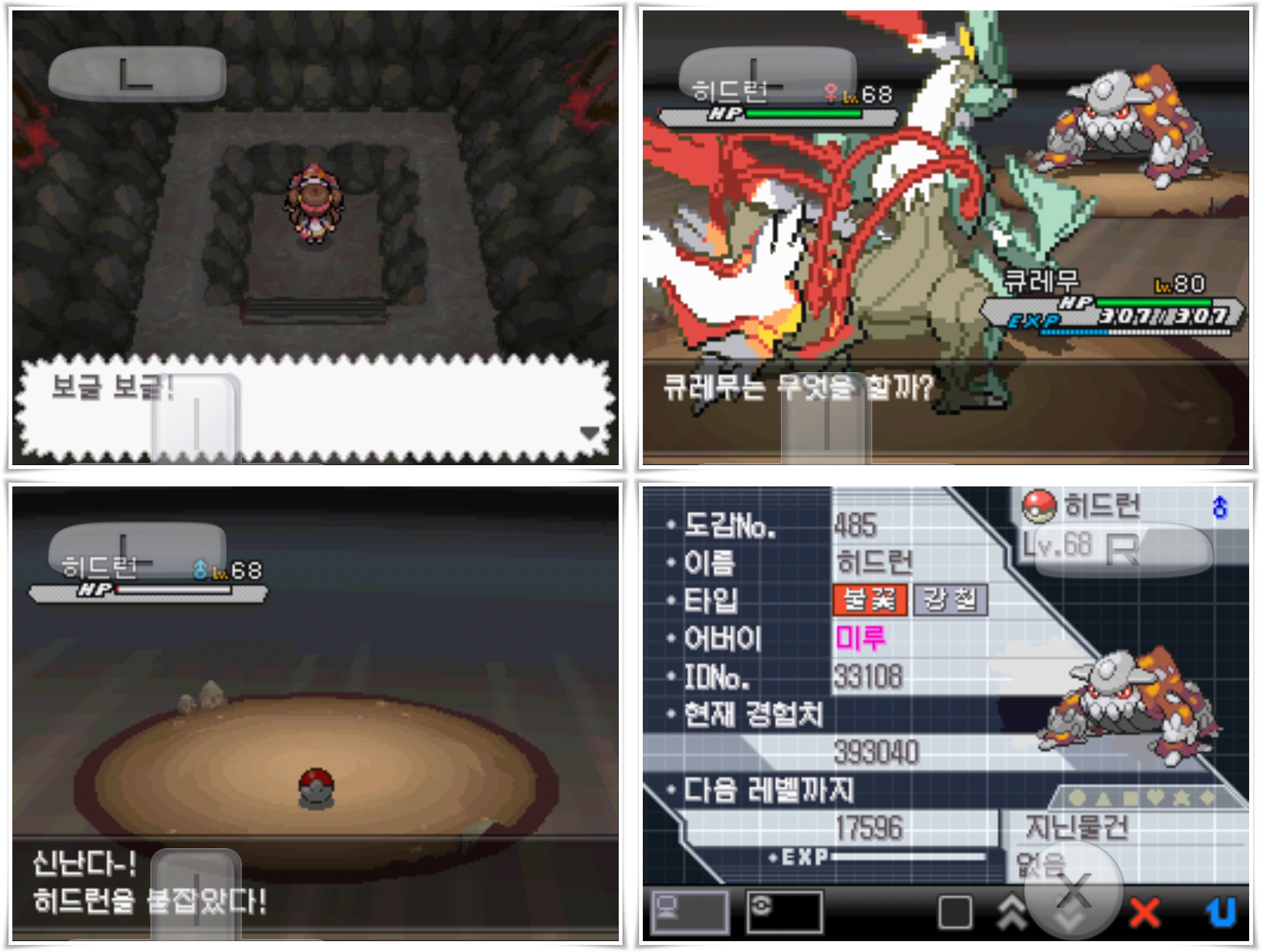 - 히드런 포획: 상태이상+마스터볼/울트라볼 적극 활용, 저장은 Must!