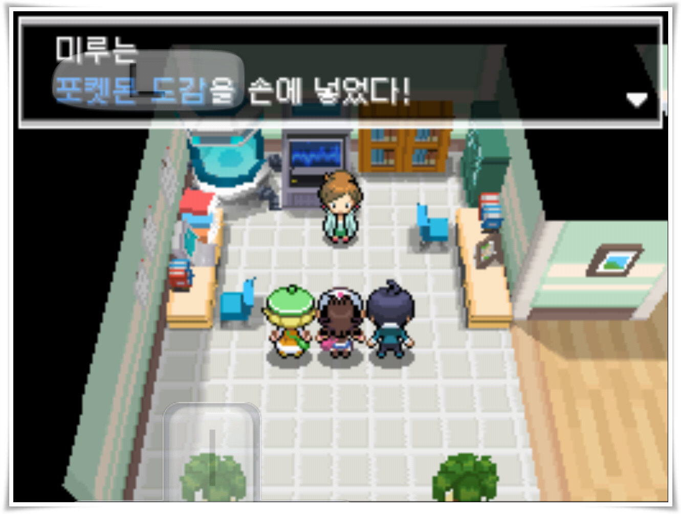 연구소 이동 후 포켓몬 도감을 받고,